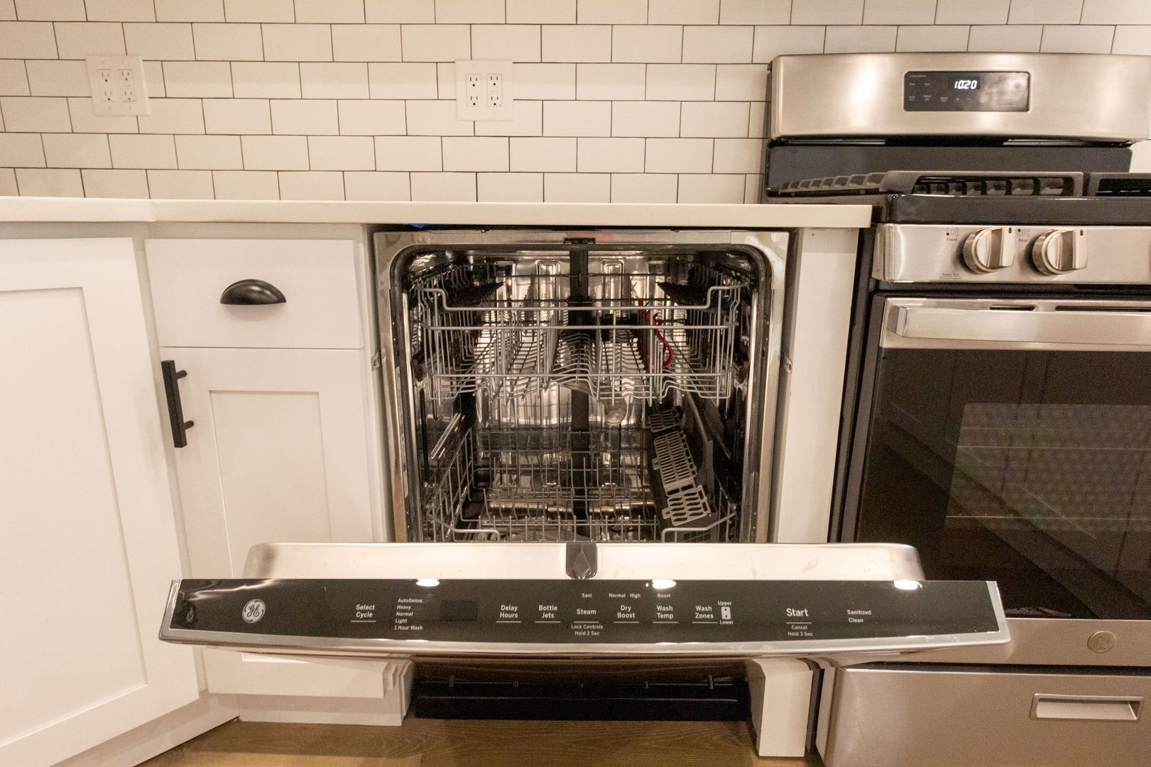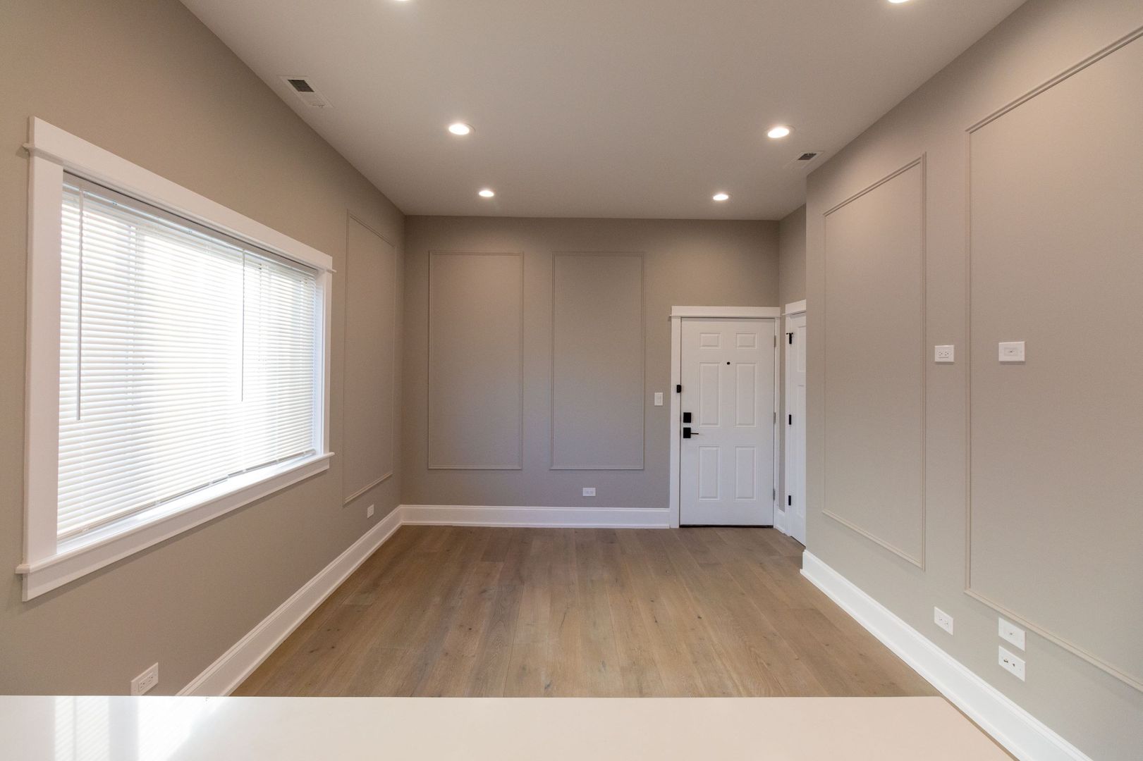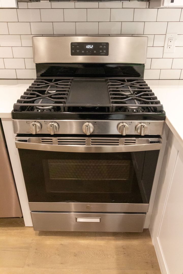 Enjoy neutral tones, engineered hardwood floors, and recessed lighting throughout. The open-concept kitchen is a highlight, boasting brand-new stainless steel appliances (dishwasher, microwave, oven/range, and refrigerator), complemented by white quartz countertops, 42-inch white shaker cabinetry, and a stylish ceramic subway tile backsplash. Additional touches include a garbage disposal and icemaker for extra convenience.