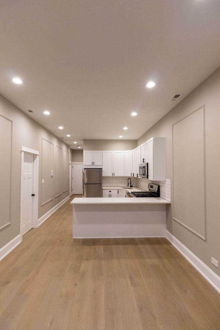 Located in a safe, quiet neighborhood, you’re just blocks away from vibrant restaurants, nightlife, shopping, the Metra, Blue Line El, the 606 Trail, and Humboldt Park. Parking is available for $150/month.