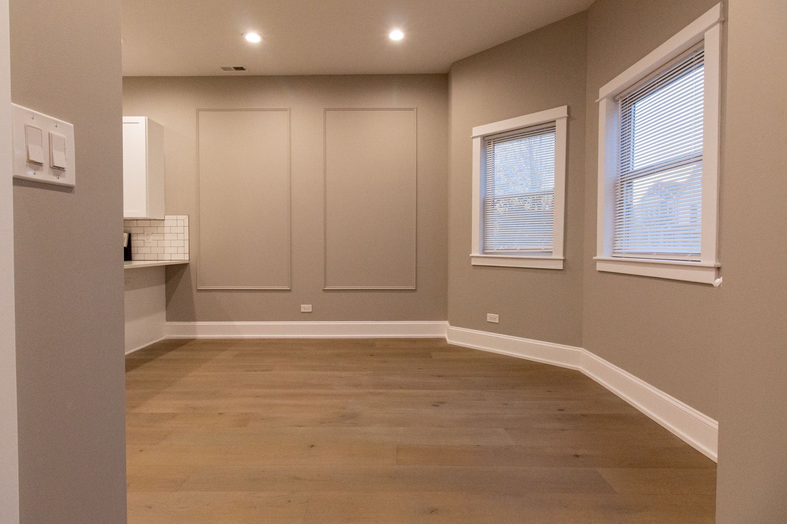 Both bedrooms are generously sized with ample closet space, while the luxurious new bathroom offers a serene retreat. The apartment is bathed in natural light from new windows throughout, enhancing the fresh, neutral paint colors and cozy ambiance.